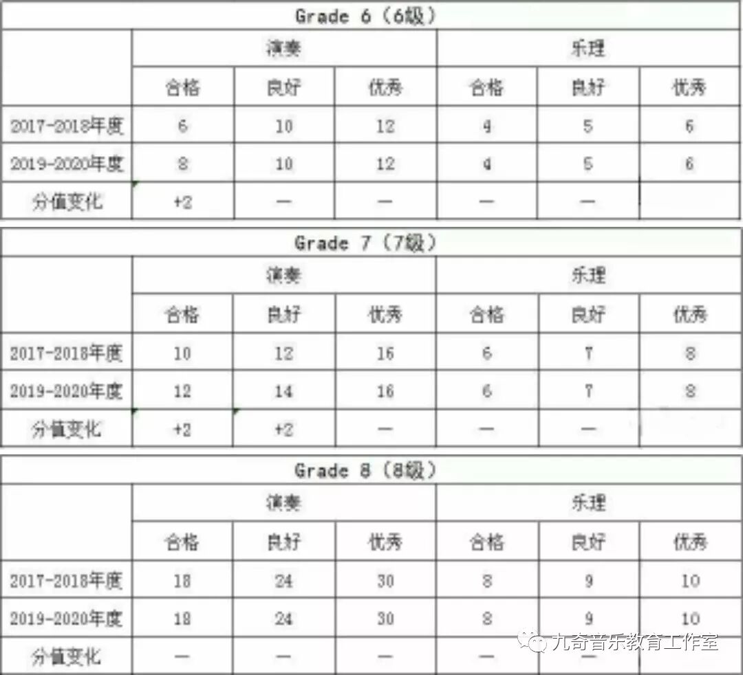 此前,Grade 7中演奏合格 +10 分 ,本年度提升 2 分;演奏良好 +12 分,本年度 提升2分 。
